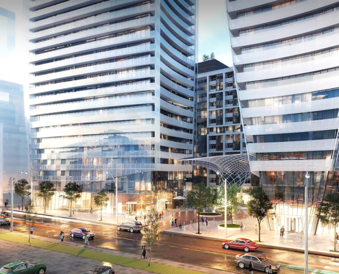 The latest development now rising into the skyline of Toronto's Entertainment District, Greenland Group's King Blue, has been steadily growing taller at the intersection of King Street West and Blue Jays Way.